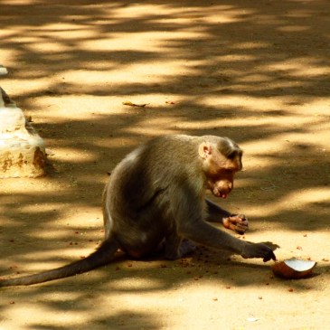 Amid enjoying the bliss and silence of the morning in this most sacred and serene space — suddenly we spotted a brown monkey take off with a woman’s plastic bag filled with what looked to be some offerings for the temple. We did not think anything of it, as this is a typical occurrence in Mother India. But what happened next, we could not have imagined!